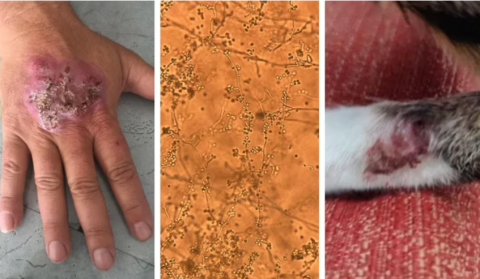En humanos, la esporotricosis suele comenzar con pequeñas protuberancias rojizas en la piel. Con el tiempo, estas pueden convertirse en heridas abiertas y, en algunos casos, avanzar a lo largo de los vasos linfáticos.