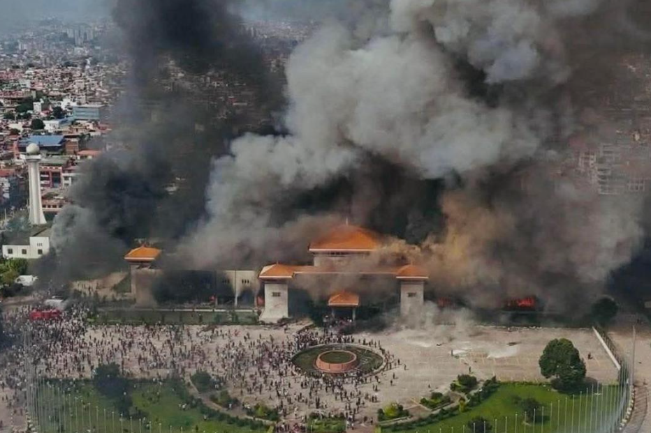 Turbas enfurecidas también prendieron fuego a edificios oficiales, entre ellos el Parlamento, la Oficina de la Presidencia y la sede del Tribunal Supremo, además de atacar medios de comunicación, incluido el complejo del grupo Kantipur, el principal conglomerado de prensa del país.
