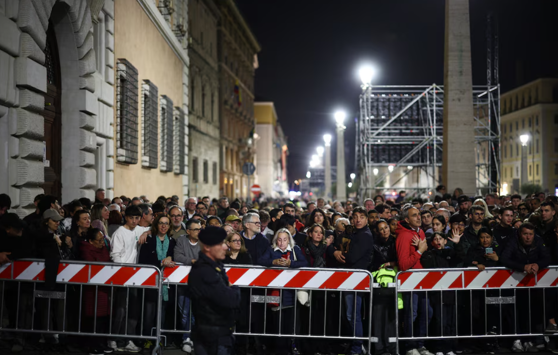 A pesar del cansancio, el ambiente en los alrededores de la Basílica es animado y piadoso, con fieles dispuestos a permanecer despiertos toda la noche para asistir al funeral del Papa Francisco.