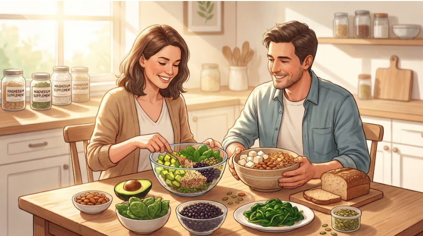 La buena noticia es que su corrección suele ser accesible a través de la alimentación. Alimentos como semillas, frutos secos, legumbres y vegetales de hoja verde destacan por su alto contenido. Por ejemplo, una porción de semillas de calabaza puede aportar cerca del 40% del requerimiento diario en adultos, lo que las convierte en una de las fuentes más concentradas .